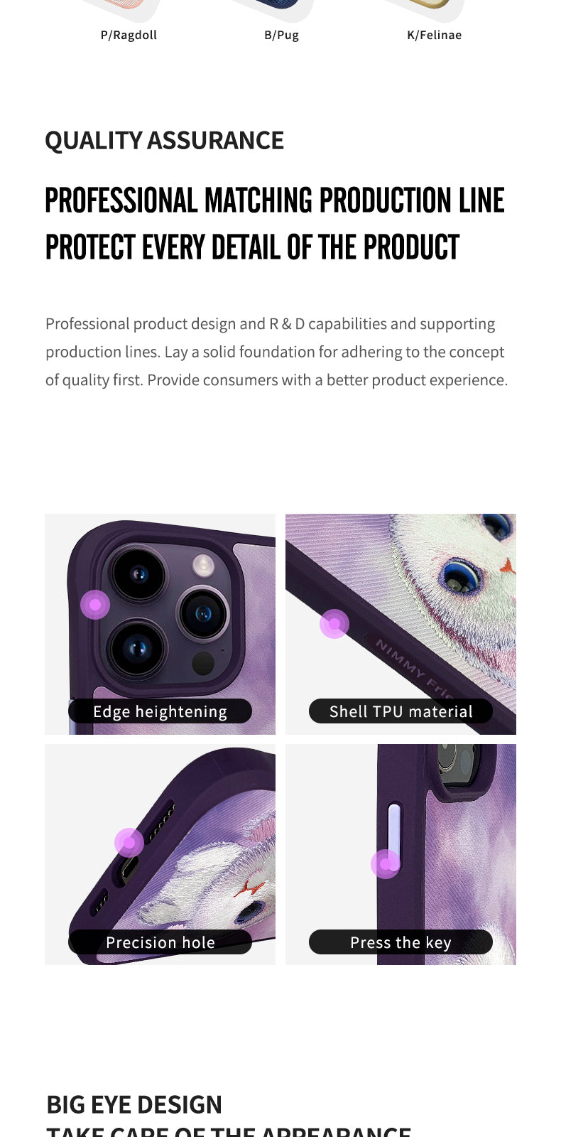 Nimmy Pet Animal Big Eye Series iPhone 13/14/15/Pro/Max Embroidery 3D Cute Cool Case