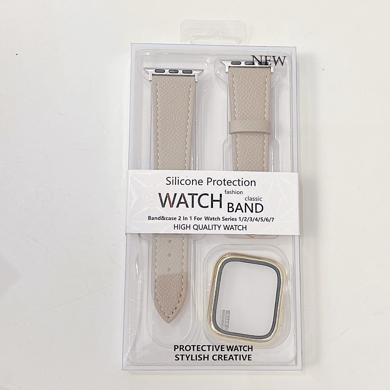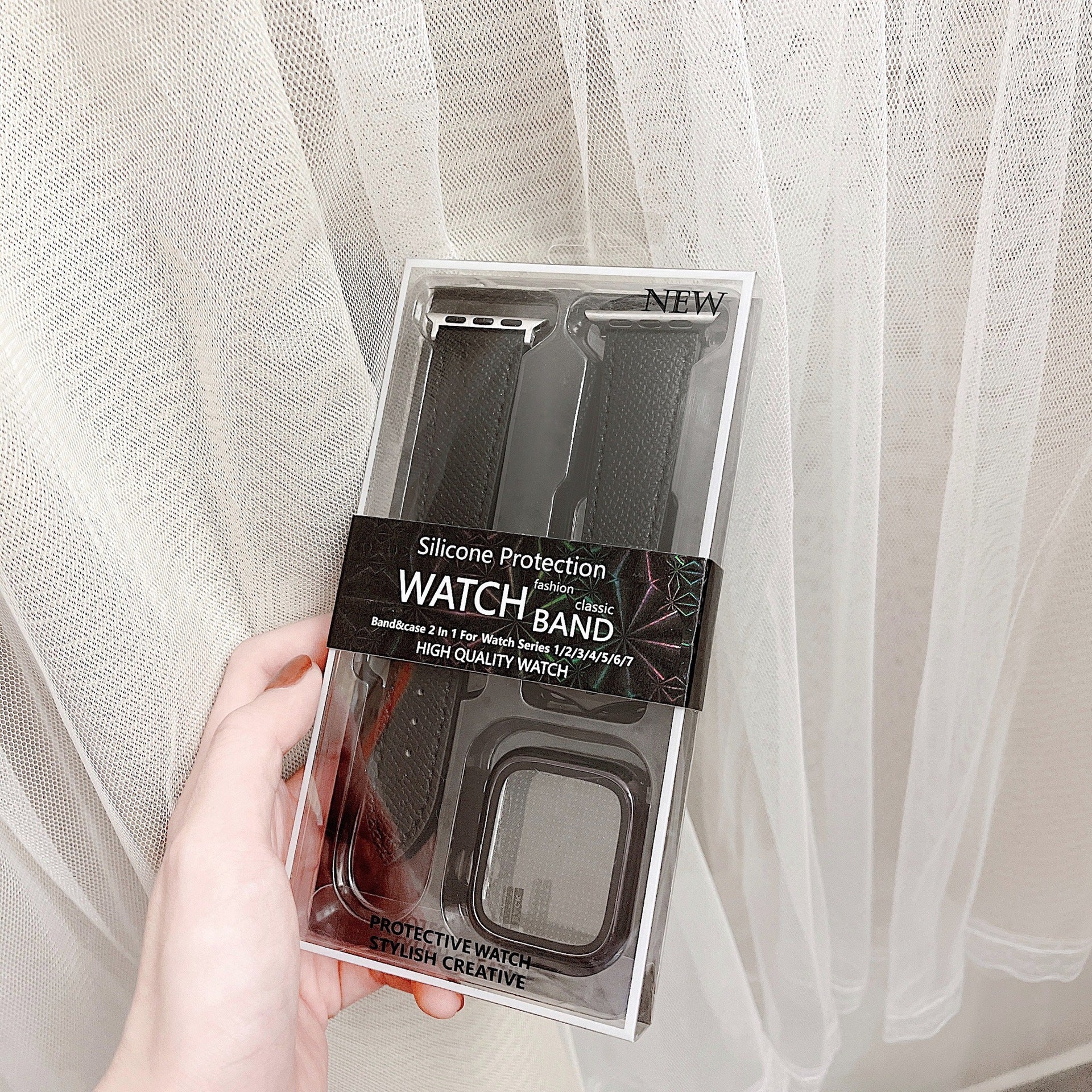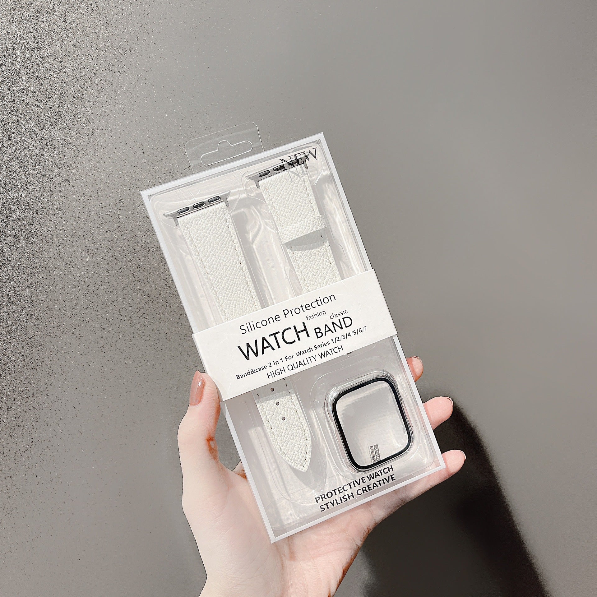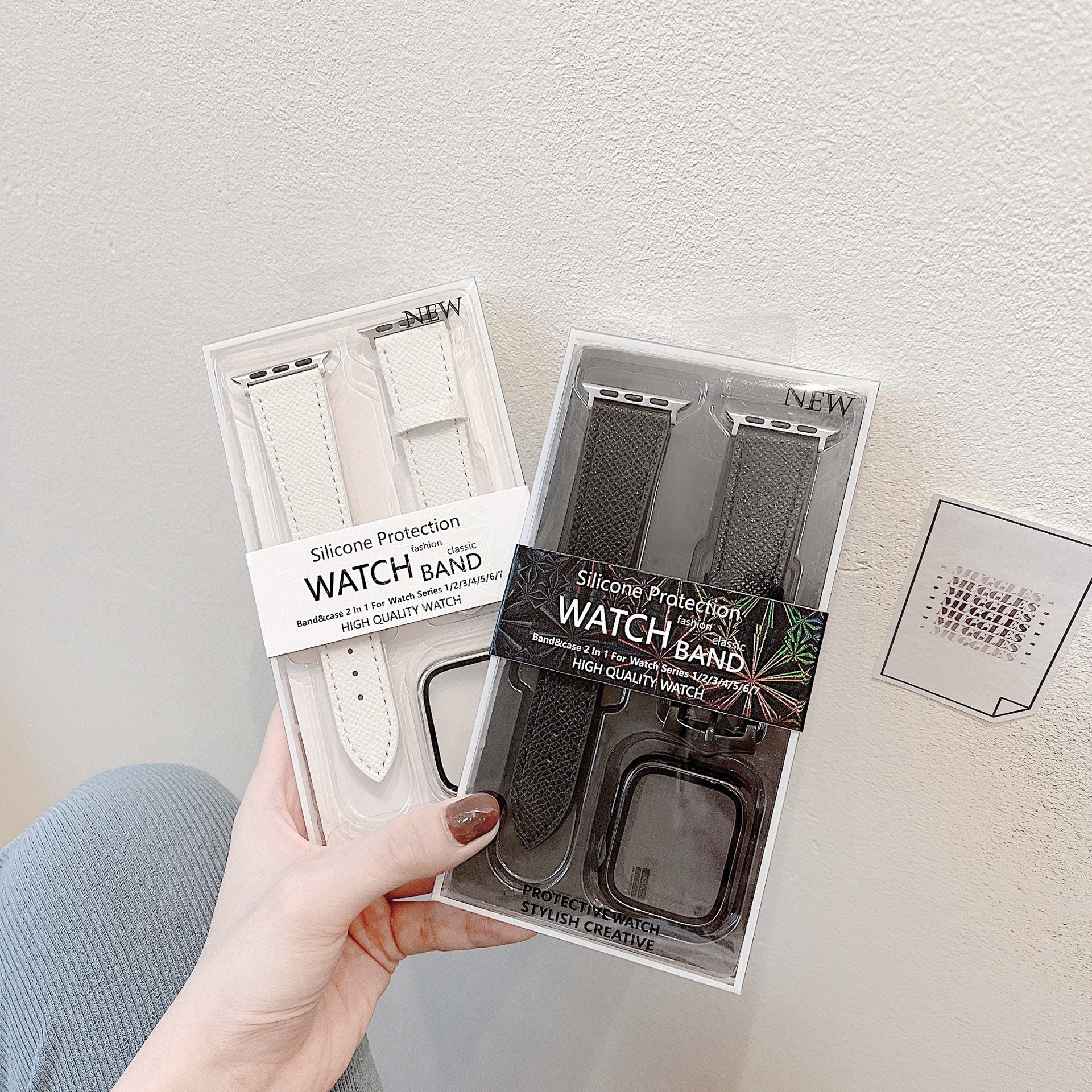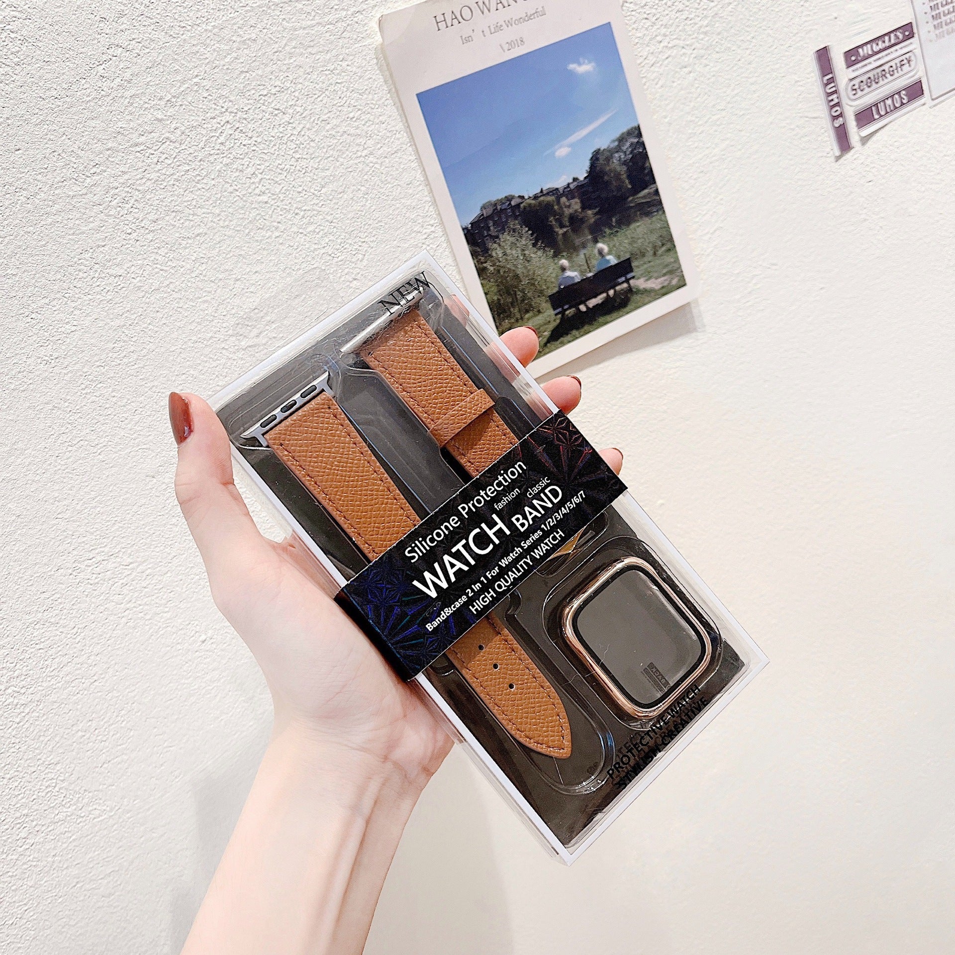3 in 1 - Case + Protector + Band Apple Watch Series 4/5/6/SE 40mm 44mm Full Covered Genuine Leather Fashion Protection Bundle